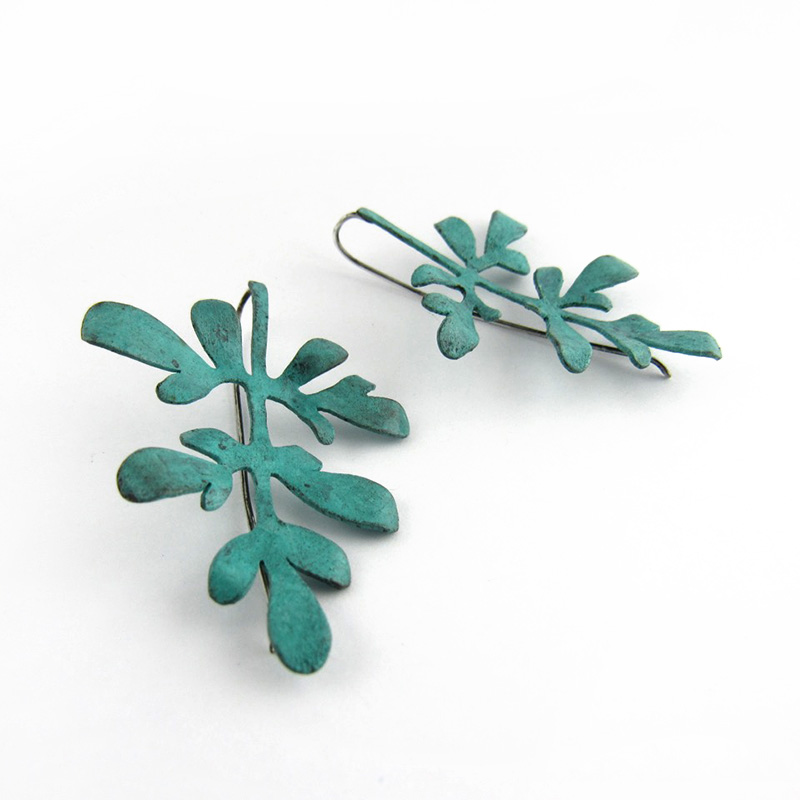 Elaborado en cobre calado a mano patinado con gancho de Plata.